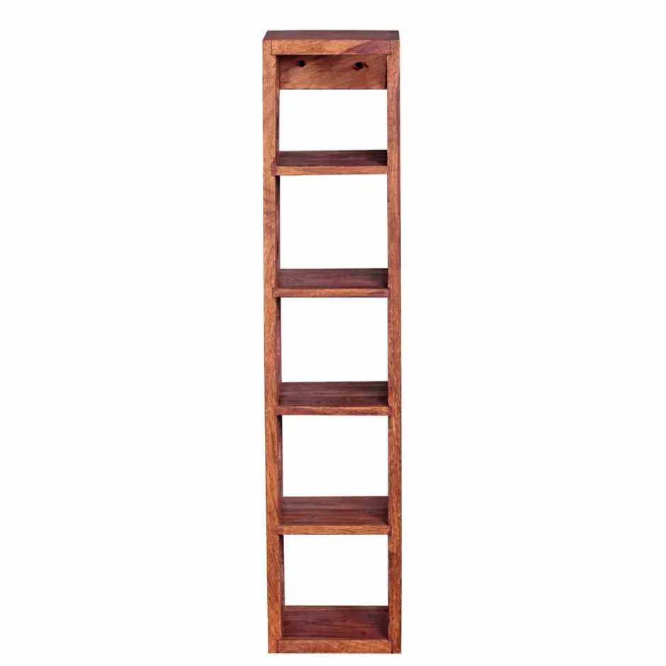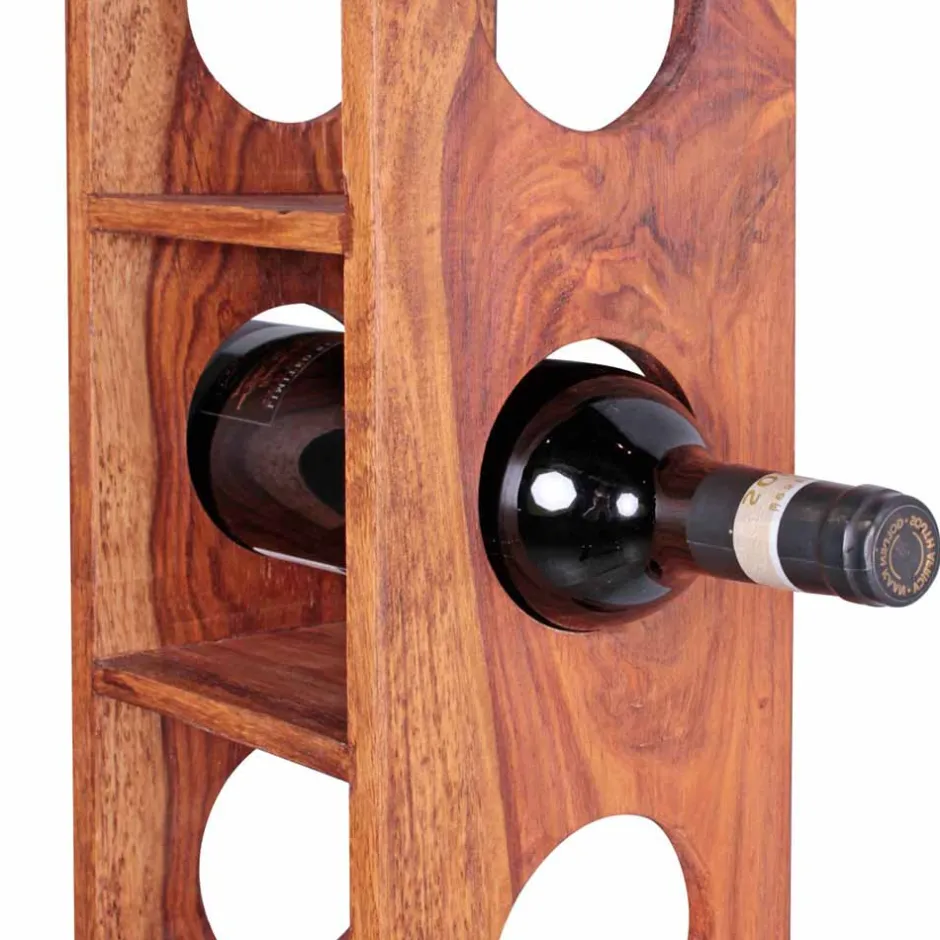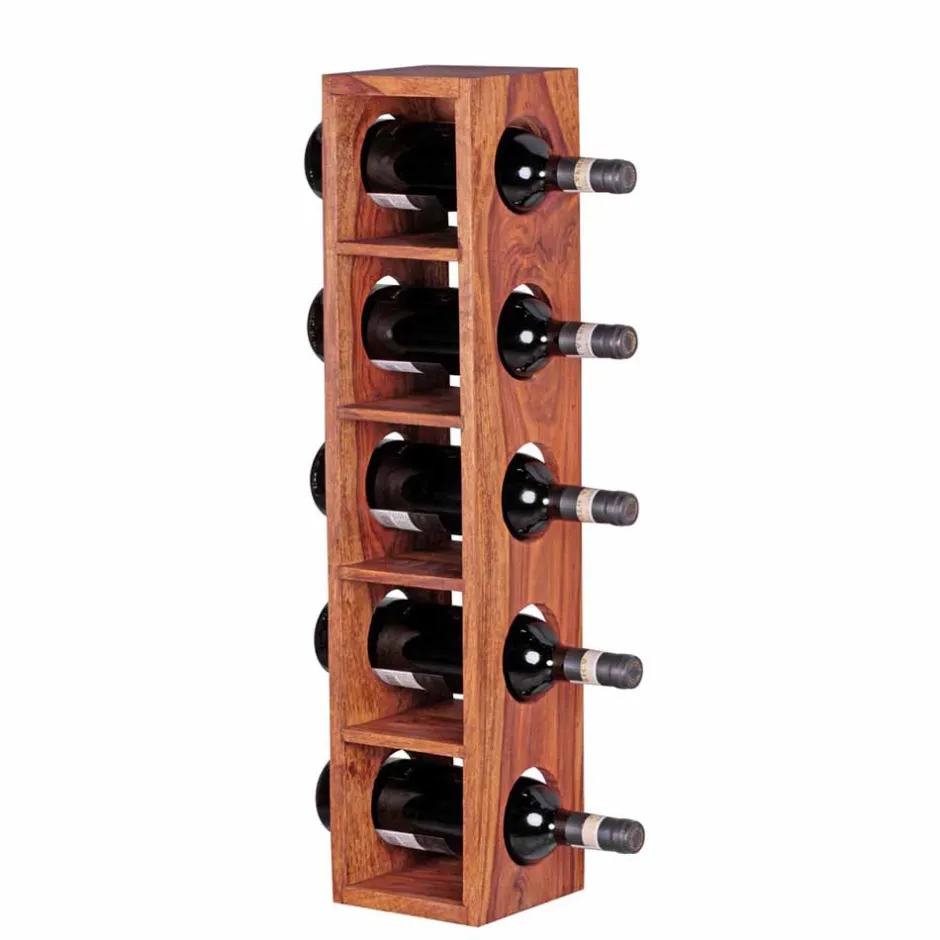 - Regal bietet fünf offene Ablagefächer mit Öffnungen für fünf Weinflaschen