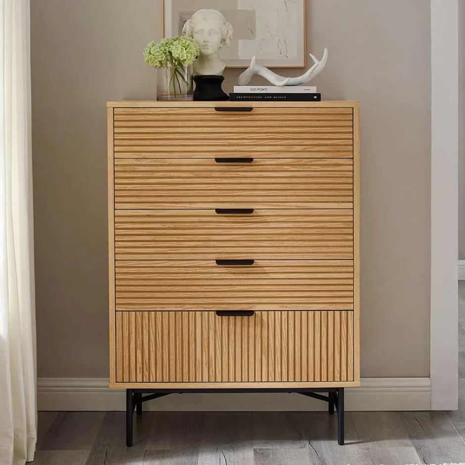 - Fünf Schubladen mit Metallauszug und Soft Close Funktion, Innenmaße (BxHxT): oben je ca. 70,2×10,8×33,5 cm, unten ca. 70,2×14,5×33,5 cm
