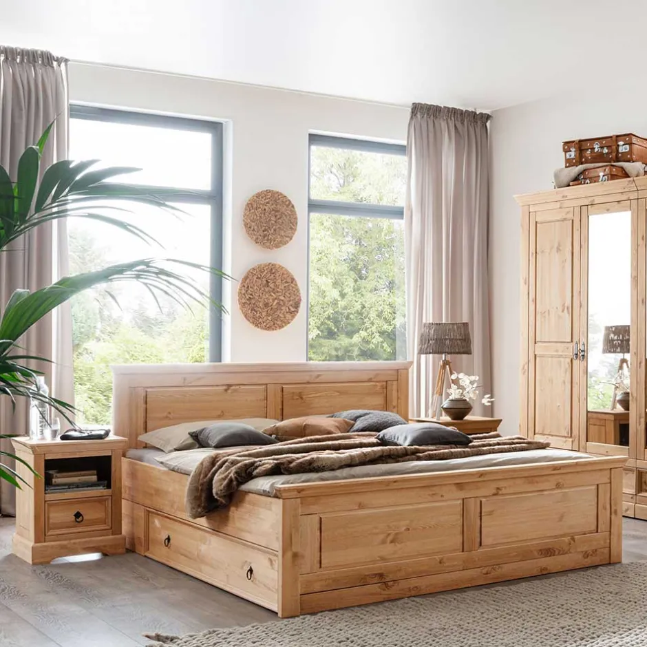 - Komfortables Landhaus Schlafzimmer Set in Eichefarben