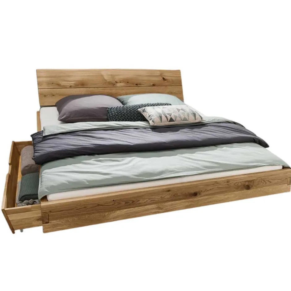 - Inklusive zwei Stauraum-Bettkästen auf Rollen, Maße (BxHxT): ca. 130x15x64 cm