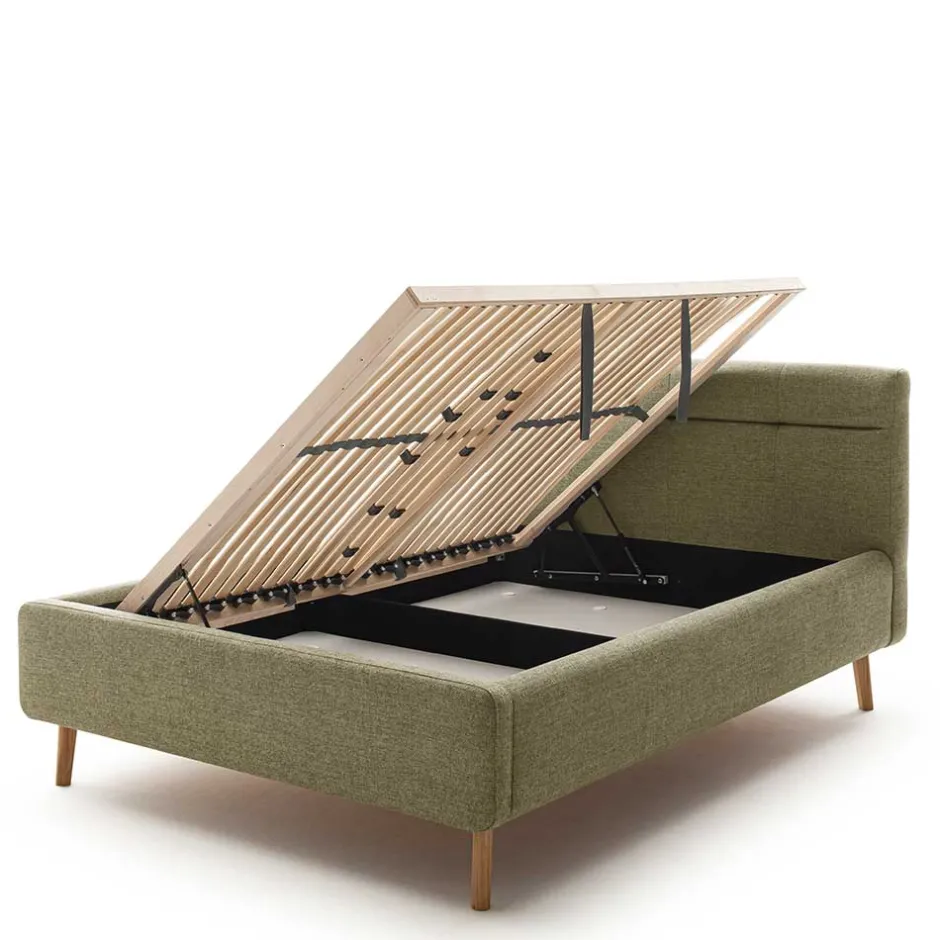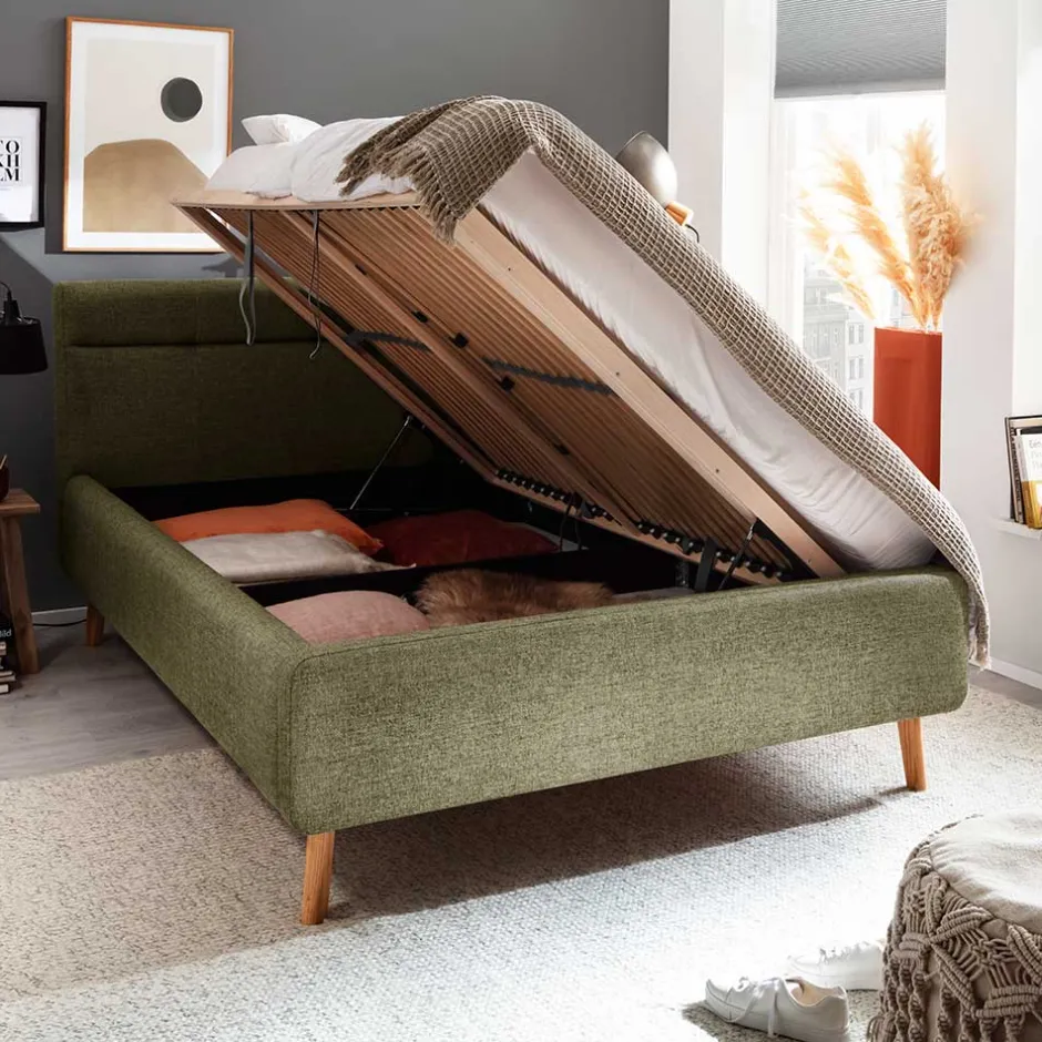 - Trendgemäßes Polsterbett in Grün und Eichefarben