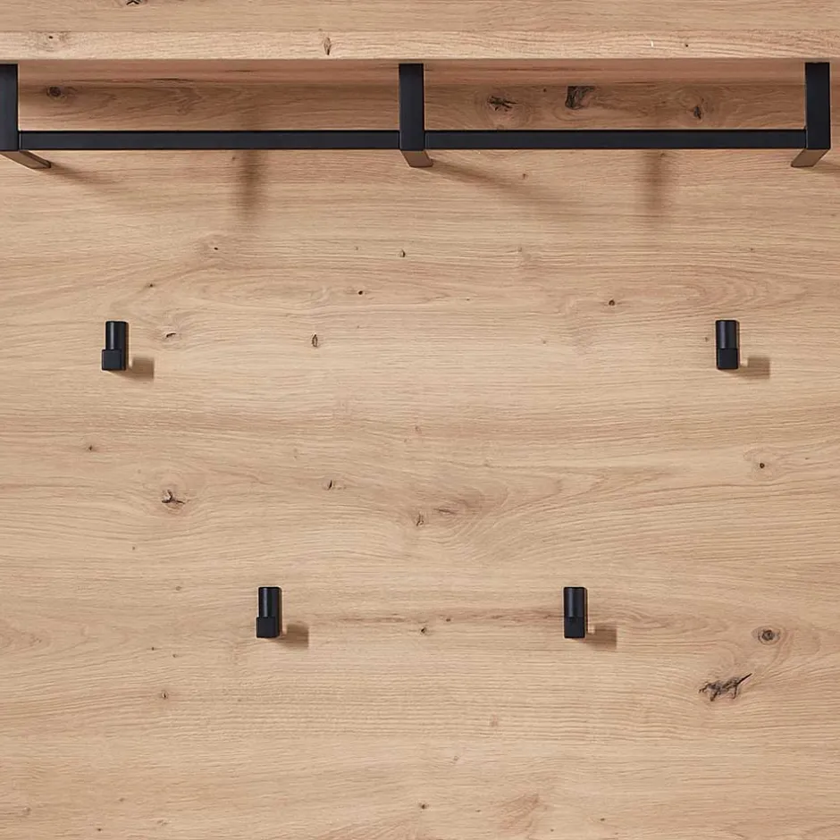 - Geschmackvolles Garderobenpaneel in Wildeichefarben und Dunkelgrau