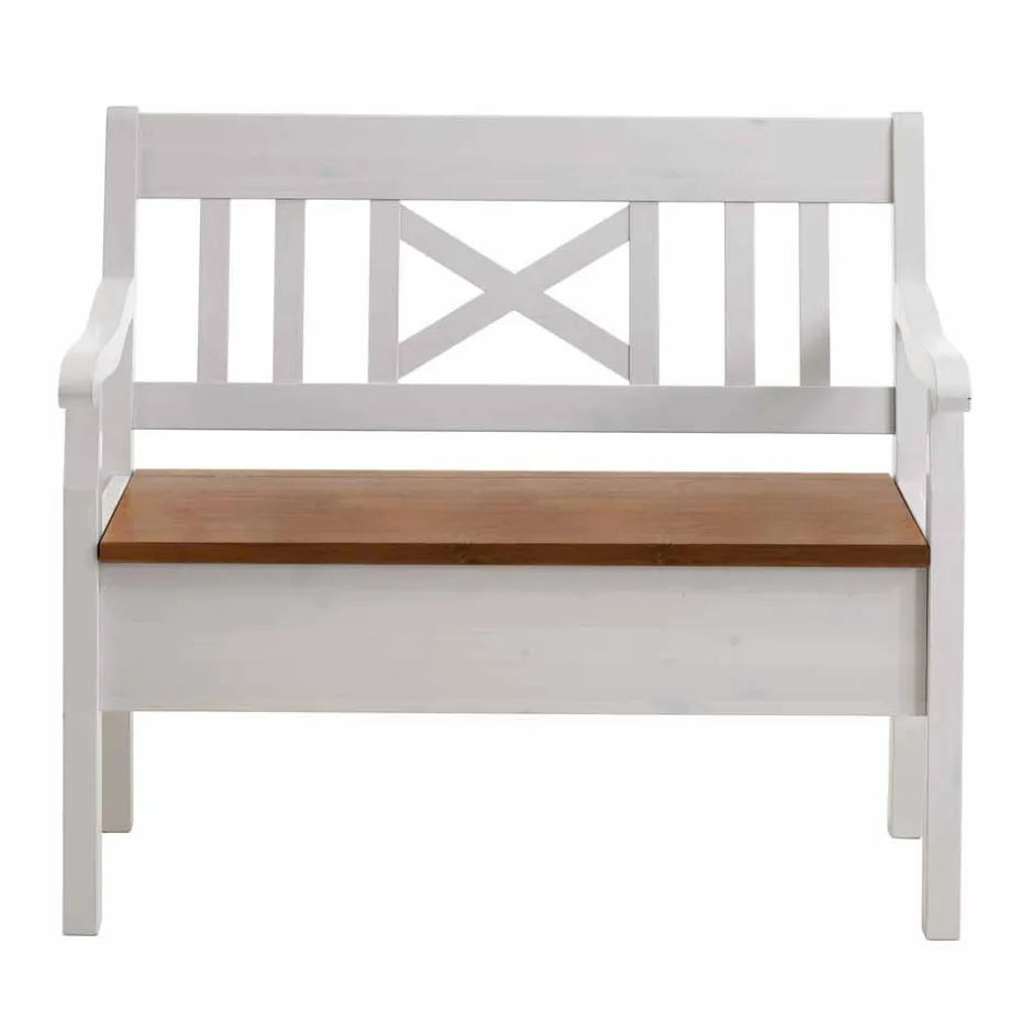 - Ländliche Sitzbank in Weiß und Bernsteinfarben