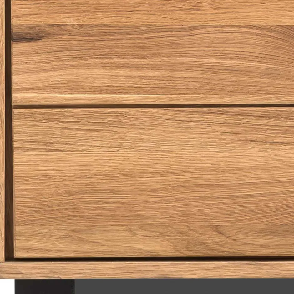 - Aus Spanplatte (Korpus) und Eiche Massivholz, durchgehende Lamelle (Front) hergestellt