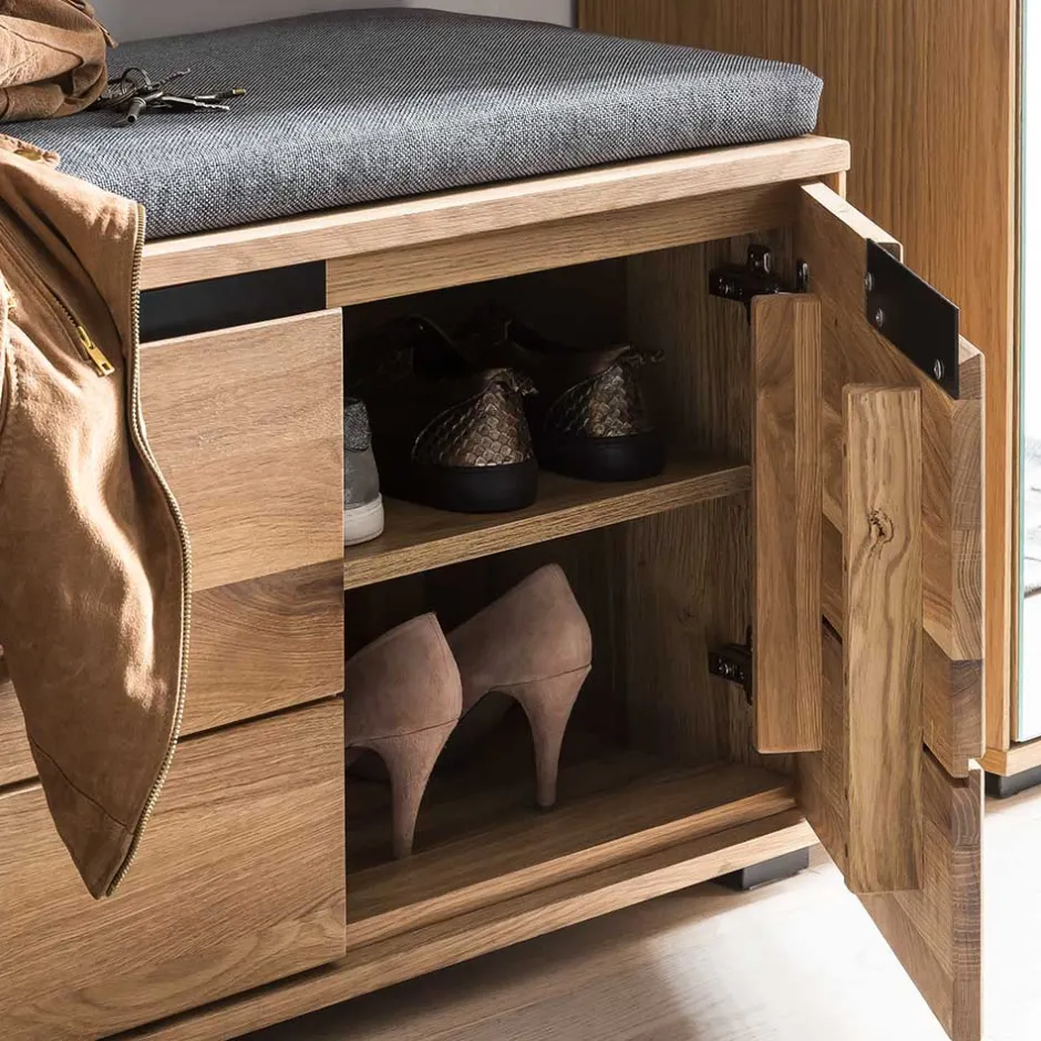 - Praktische Garderobenbank in Eichefarben und Grau