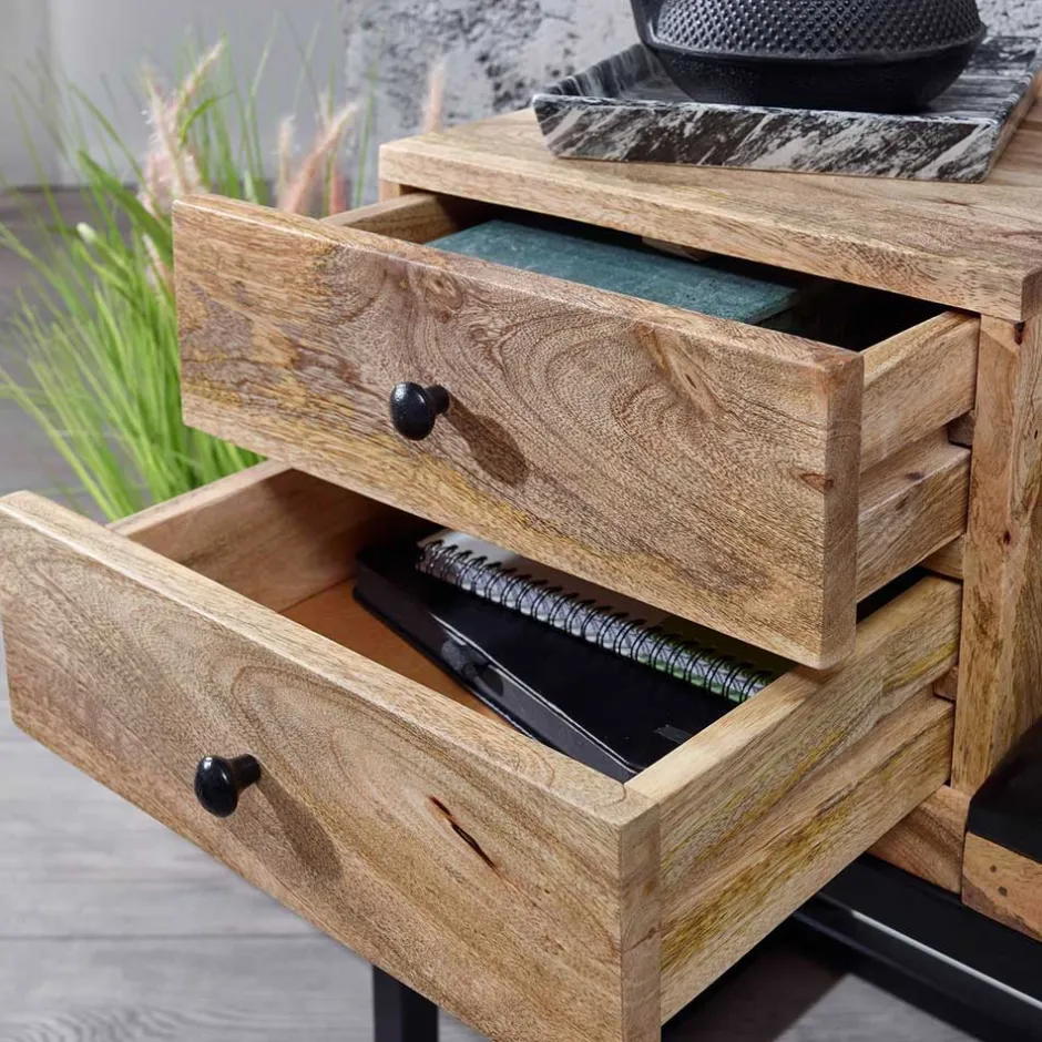 - Zwei Schubladen mit Holzauszug und Knopfgriffen