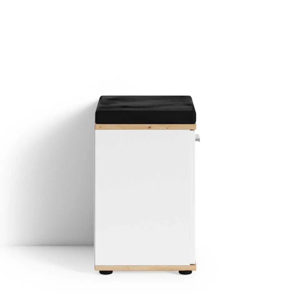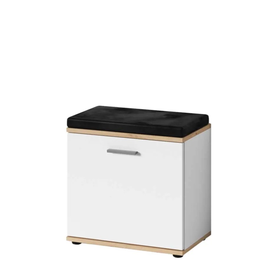 - Ansprechende Garderobenbank in Weiß und Wildeichefarben