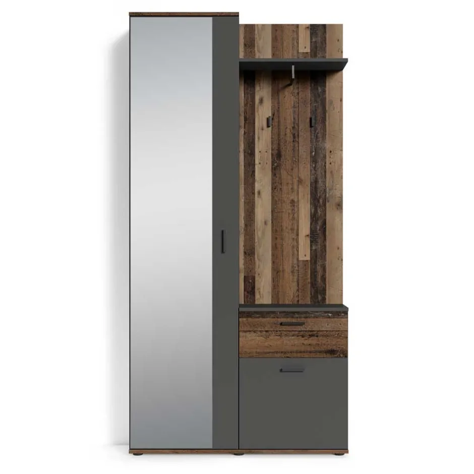 - Trendige Kompaktgarderobe in Altholz Optik und Anthrazit