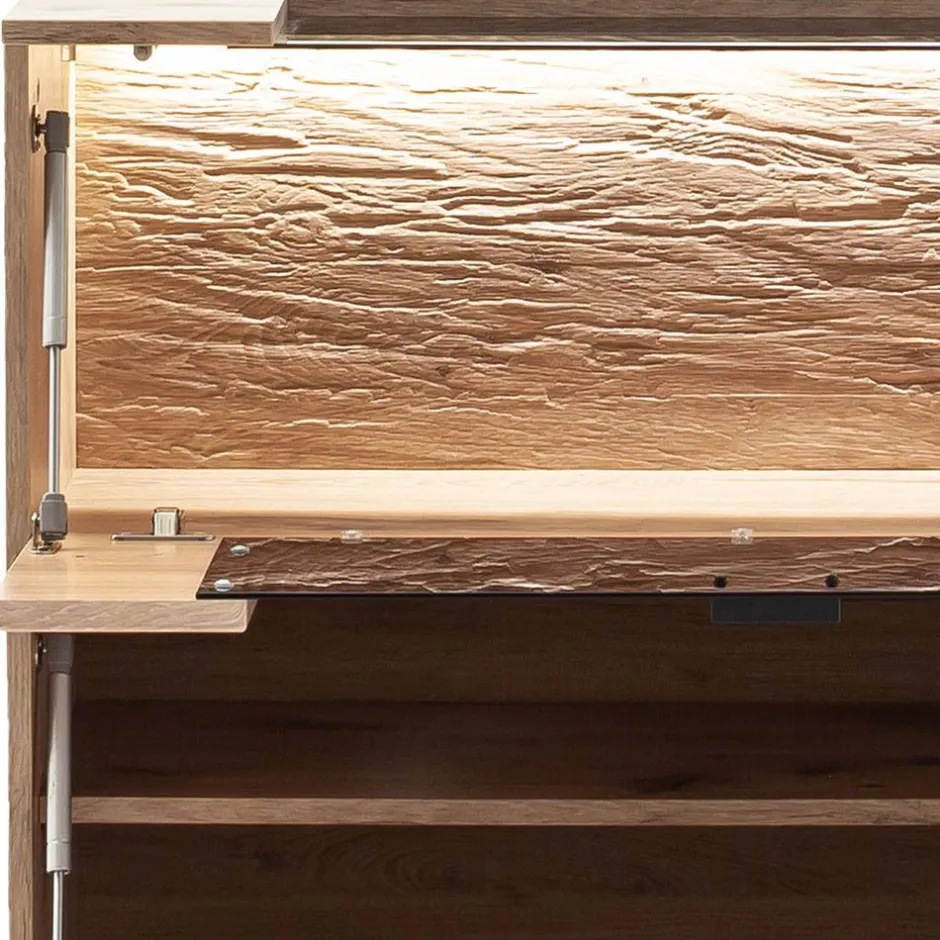 - Sichtbare Rückwand in 3D Holzoptik sandgestrahlt beschichtet