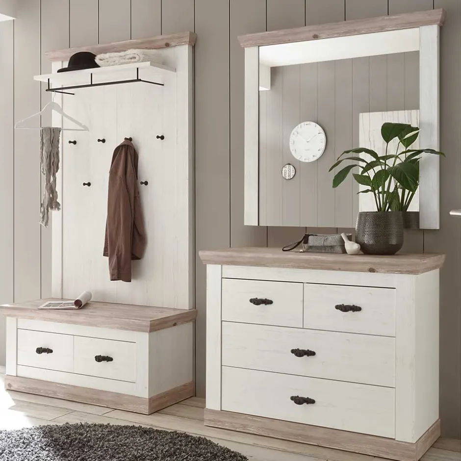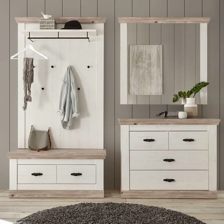 - Großartige Garderoben Kombination in Weiß und Pinie verwittert