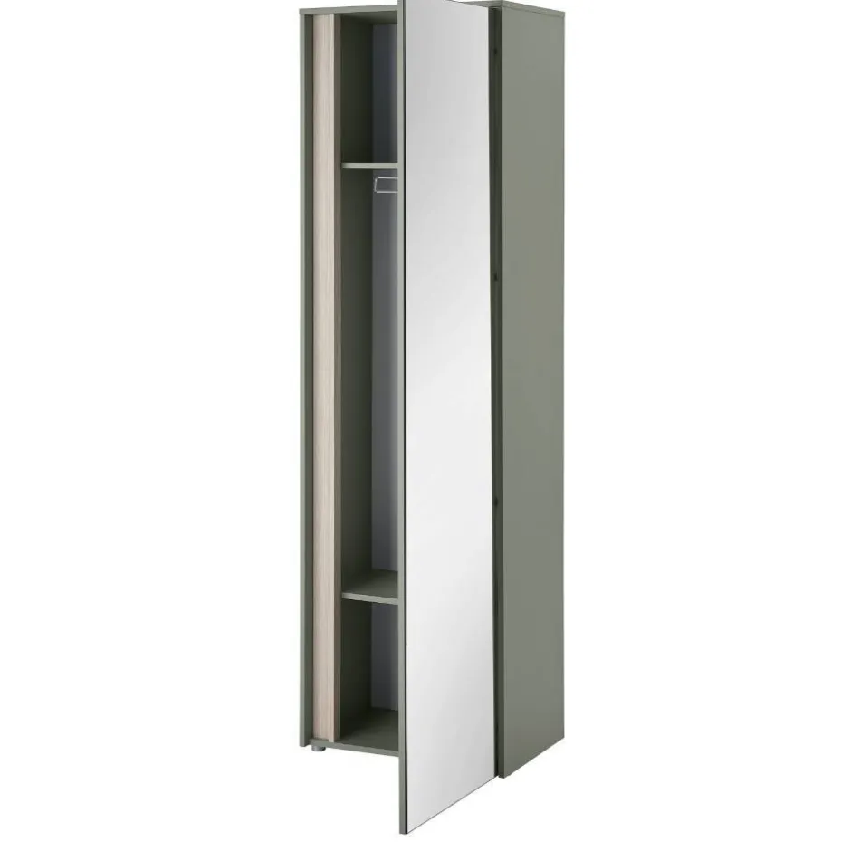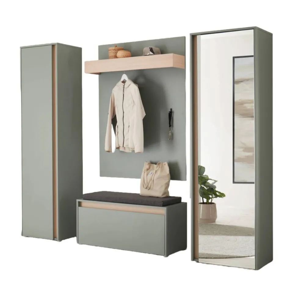 - Zeitgemäße Garderobenmöbel in Graugrün und Eichefarben