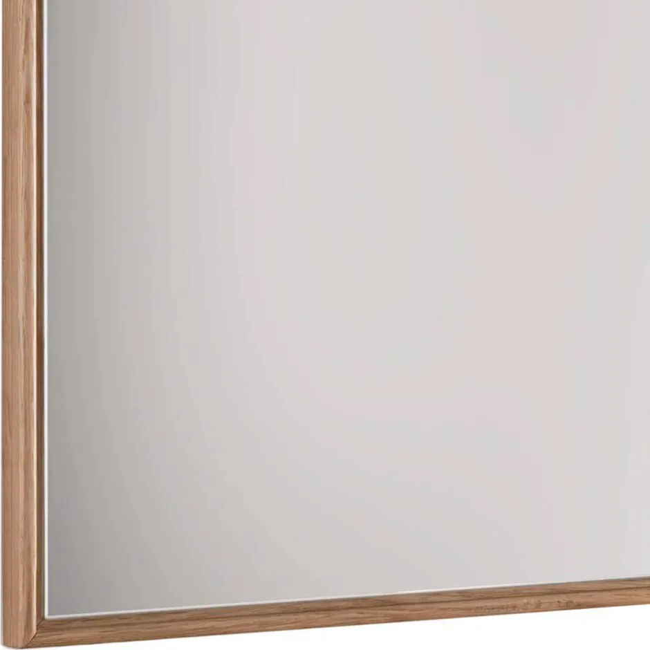 - Aus astigem Eiche Massivholz und Spiegelglas gefertigt, Korpus durchgehende Lamelle