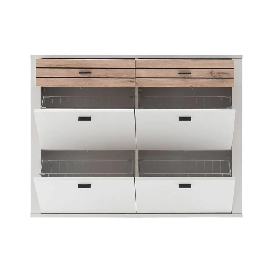 - Vier Doppel-Metallschuhkörbe bieten Platz für max. 16 Paar Schuhe bis Größe 39