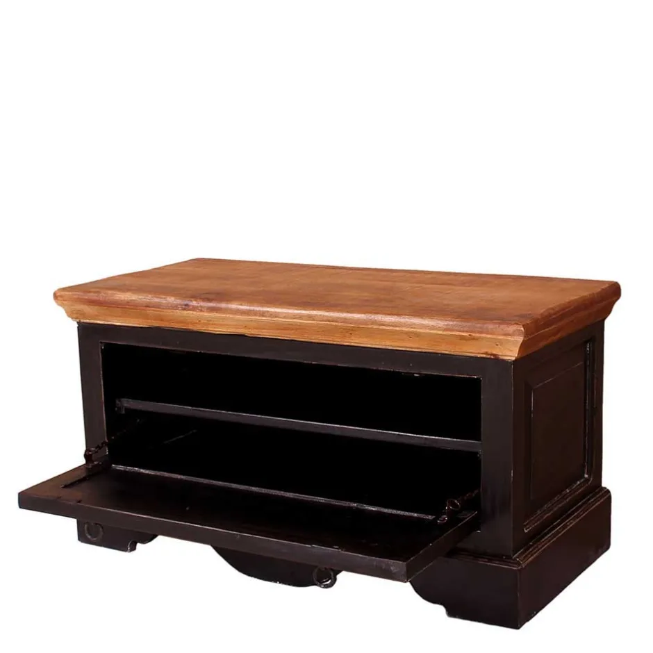 - Oberfläche in Schwarz mit Antik Finish und Gebrauchspuren, Absetzungen Honigfarben lackiert