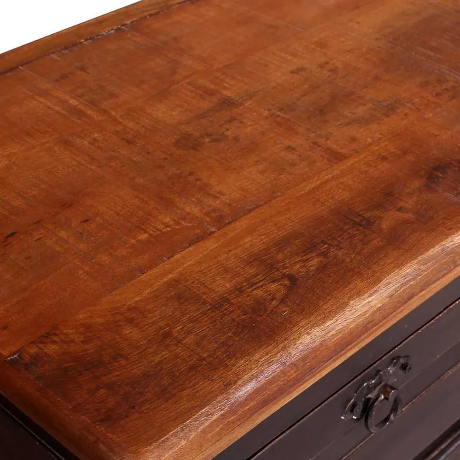 - Aus Mangobaum Massivholz (Rahmen, Deckplatten, Zierleisten) und solider MDF (Füllungen, Rückwände, Einlegeböden)