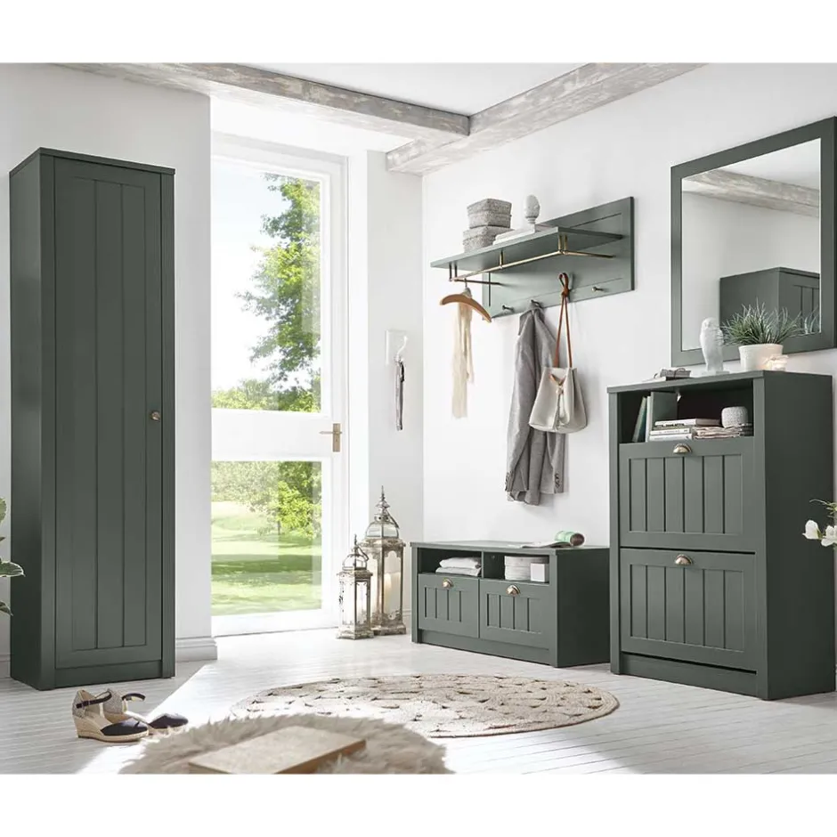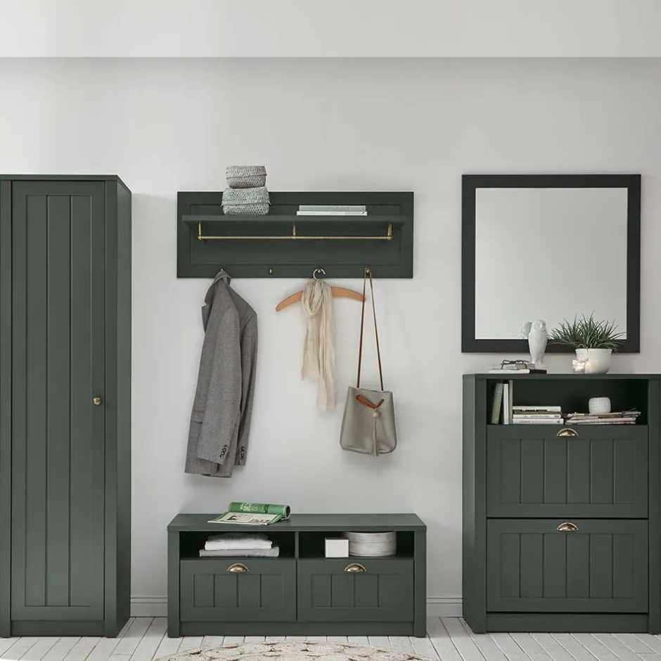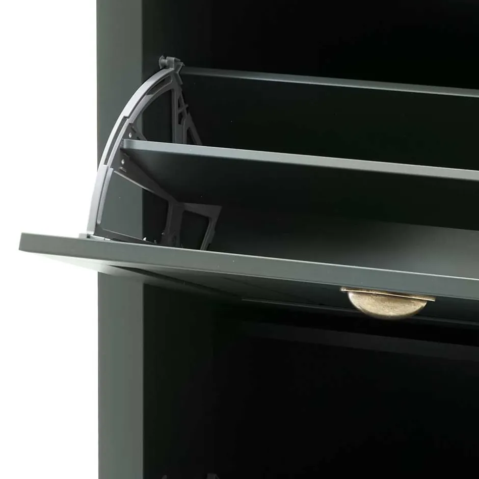 - Oberflächen melaminbeschichtet in Dunkelgrün, strapazierfähig und robust