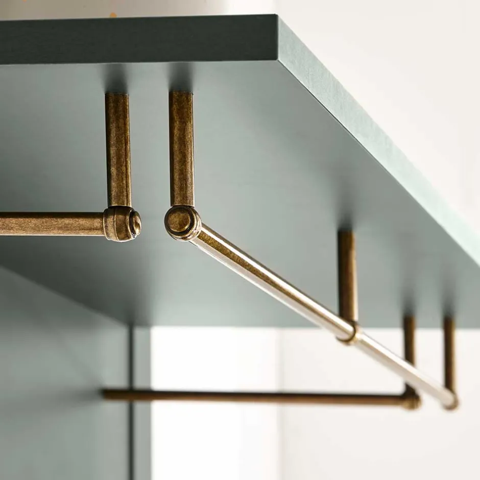 - Kleiderstangen aus Metall direkt unter dem Hutboden