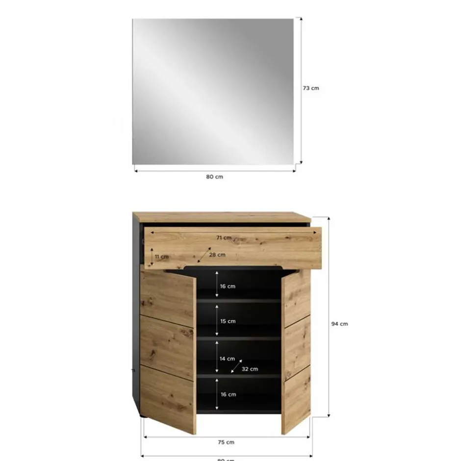 - Innen drei verstellbare Einlegeböden, Platz für bis zu zwölf Paar Schuhe, je nach Größe