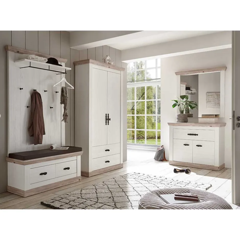 - Großartiges Garderoben Set in Pinie verwittert und Weiß