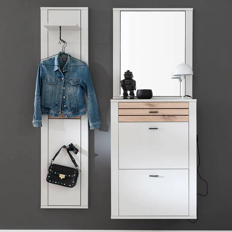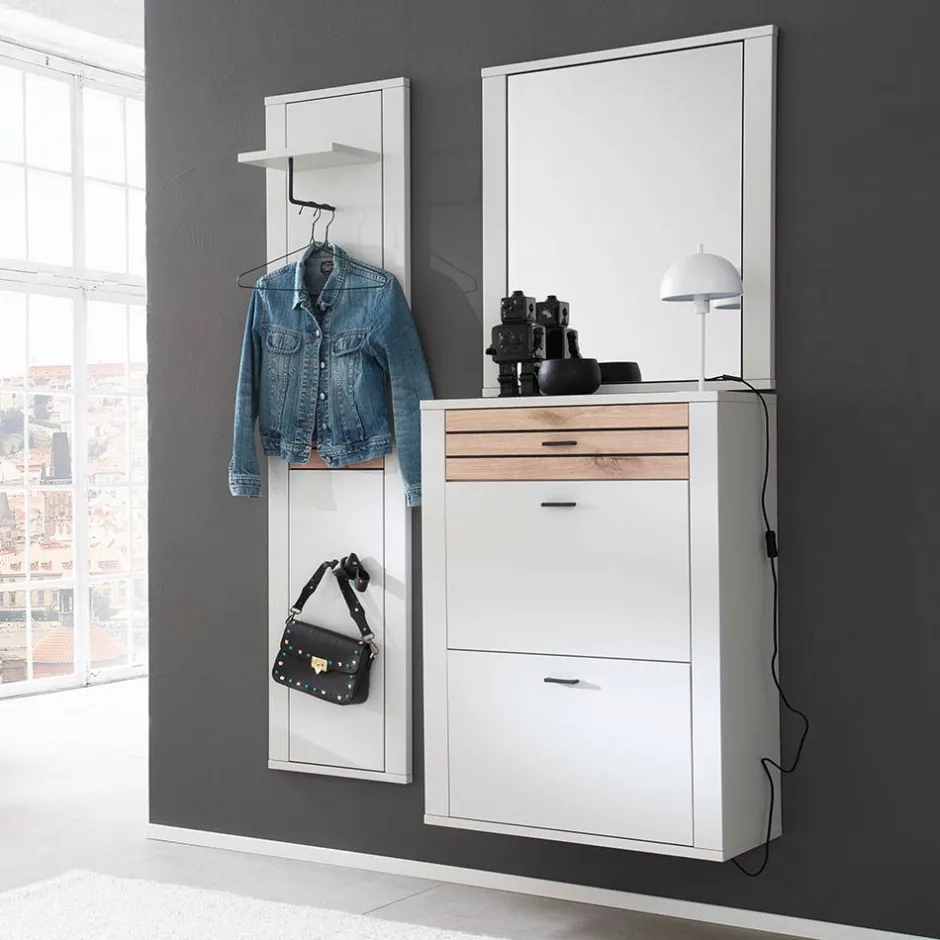 - Trendige Garderobenmöbel in Lichtgrau und Wildeichefarben