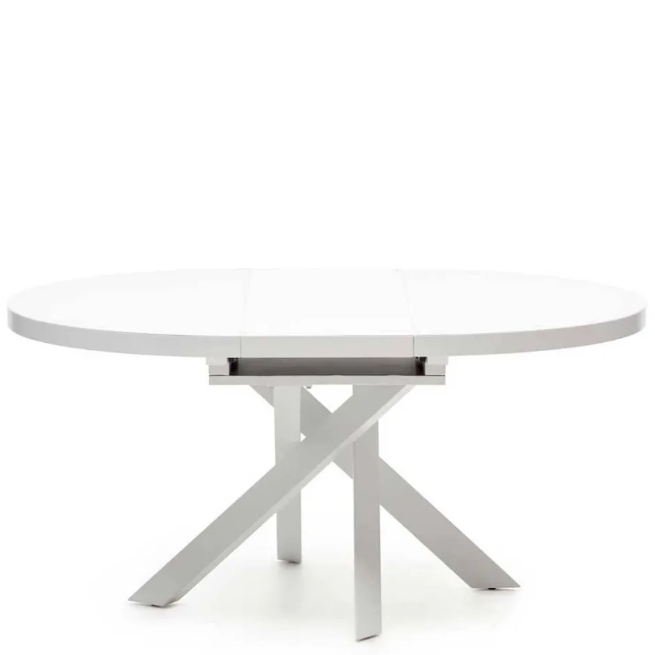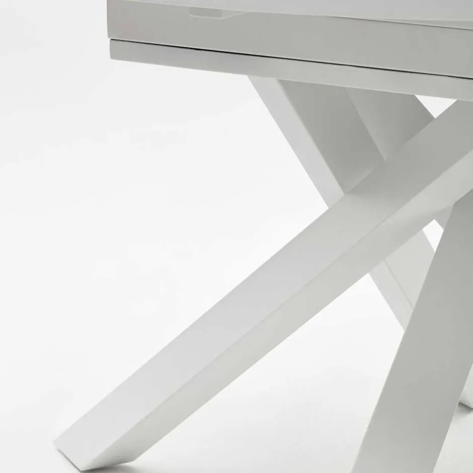 - Tischplatte aus gehärtetem Glas mit einer Basis aus lackierter MDF