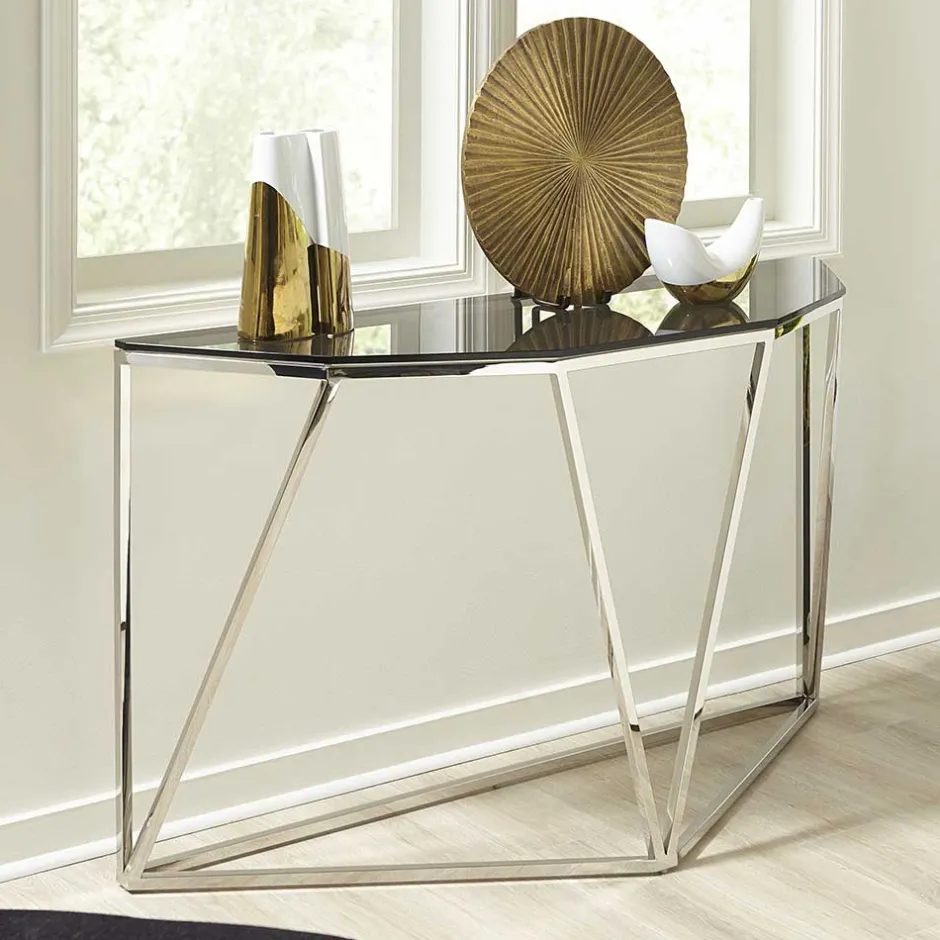 - Stylischer Konsolentisch in Rauchgrau und Silberfarben