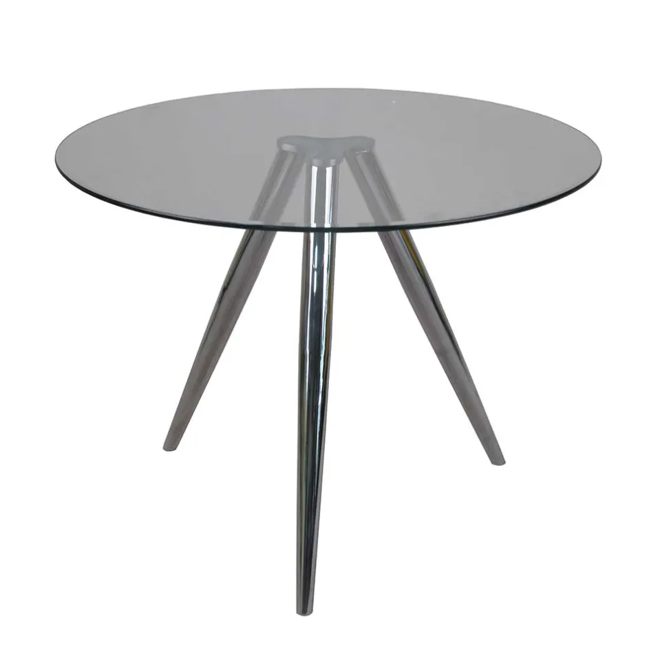 - Einmaliger Esstisch in Chromfarben und Transparent