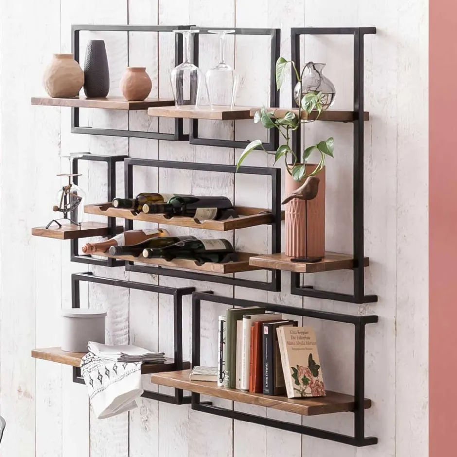 - Beeindruckendes Regal Set in Mangoholz Naturfarben und Antikschwarz