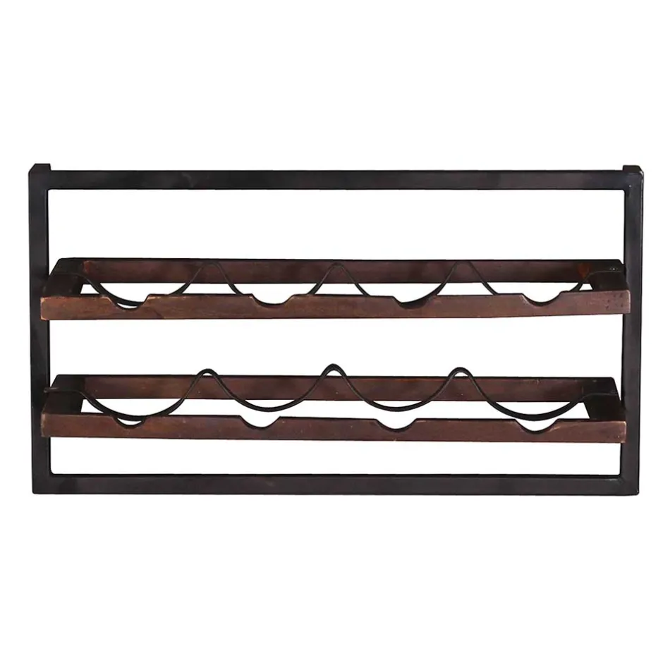 - Attraktives Hänge-Weinregal in Teak antik Dunkelbraun und Schwarz