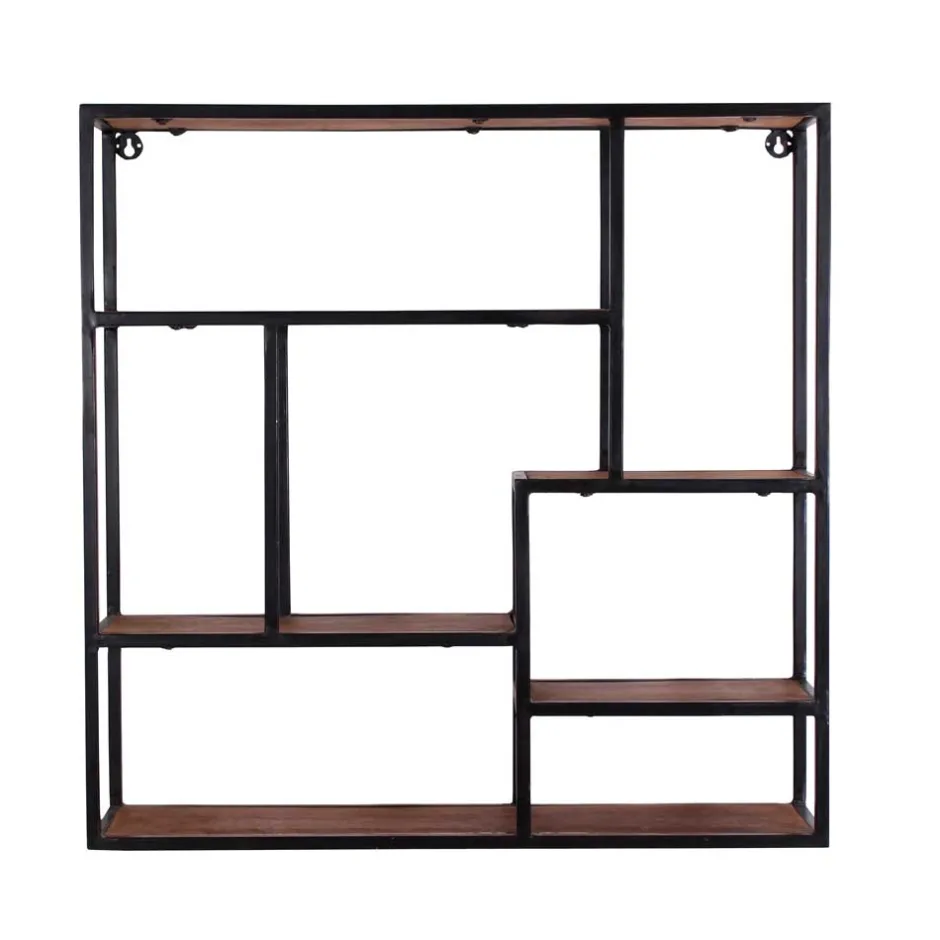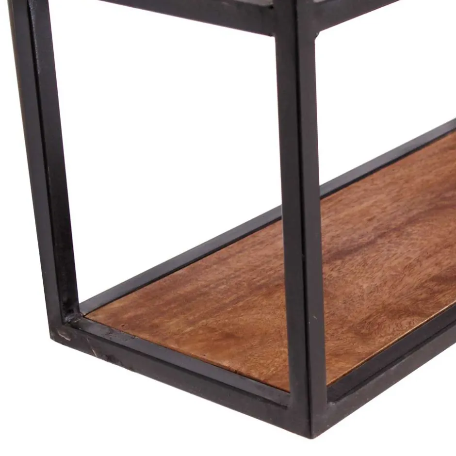 - Kompaktes Hängeregal in Schwarz und Holz Naturfarben