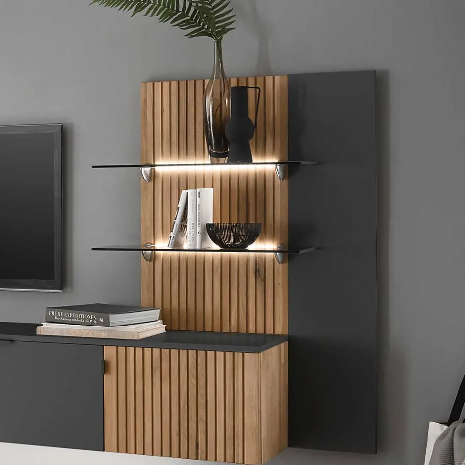 - Dekoratives Wandregal in Anthrazit und Eiche Bianco