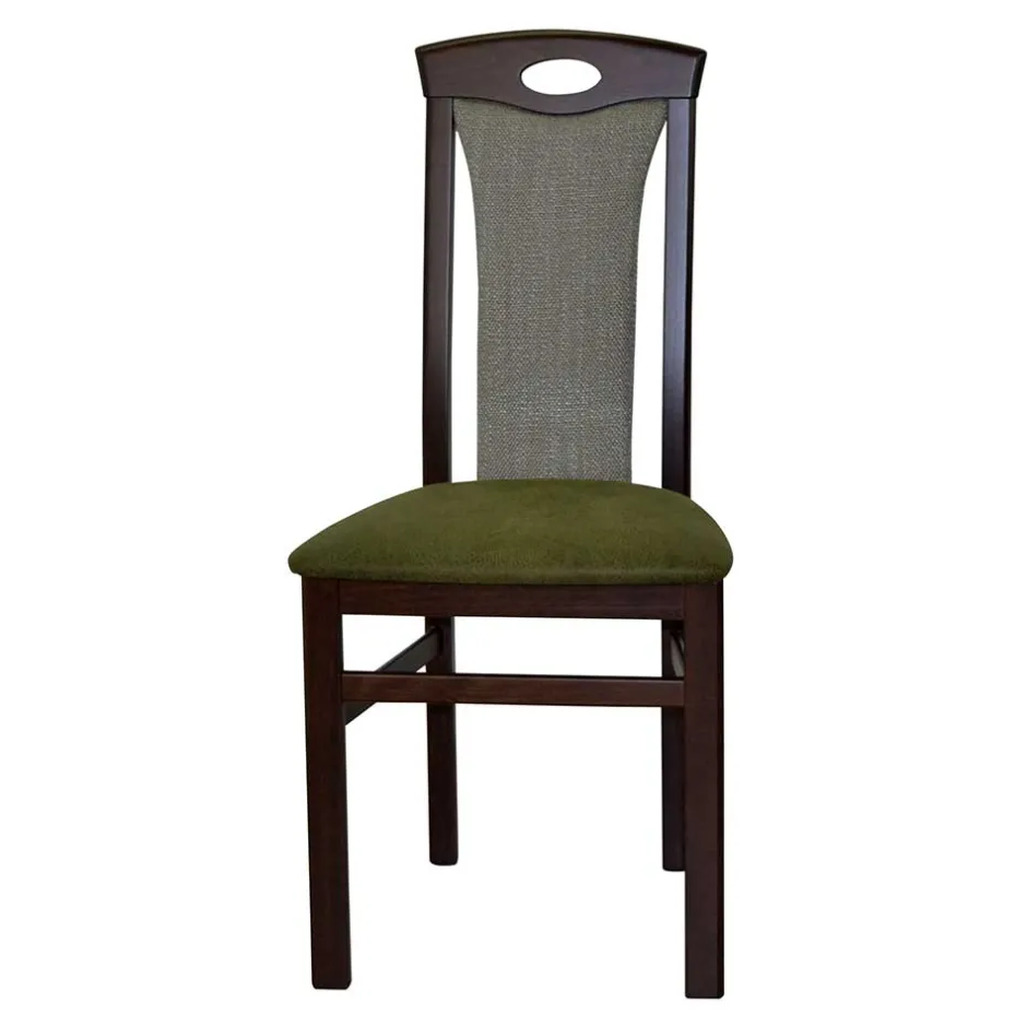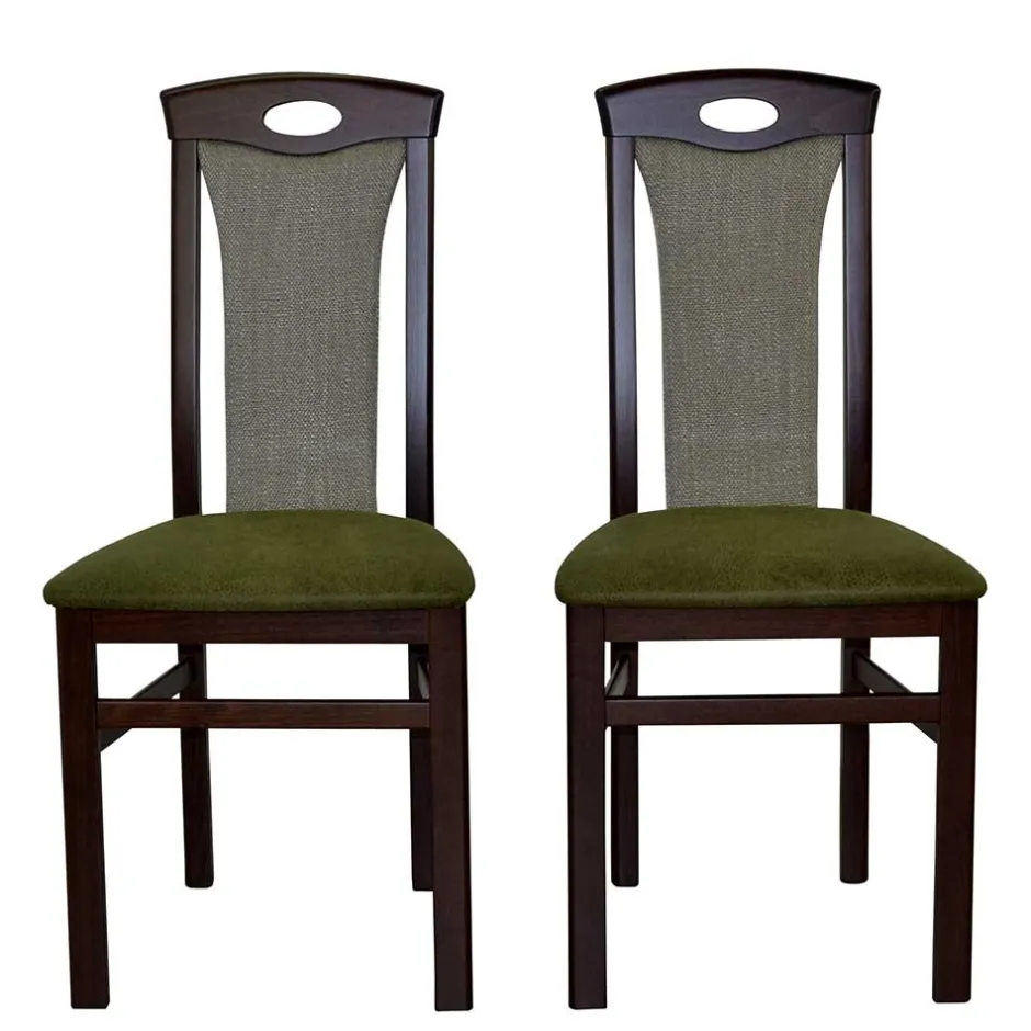 - Schicke Esszimmerstühle in Nussbaumfarben und Grün