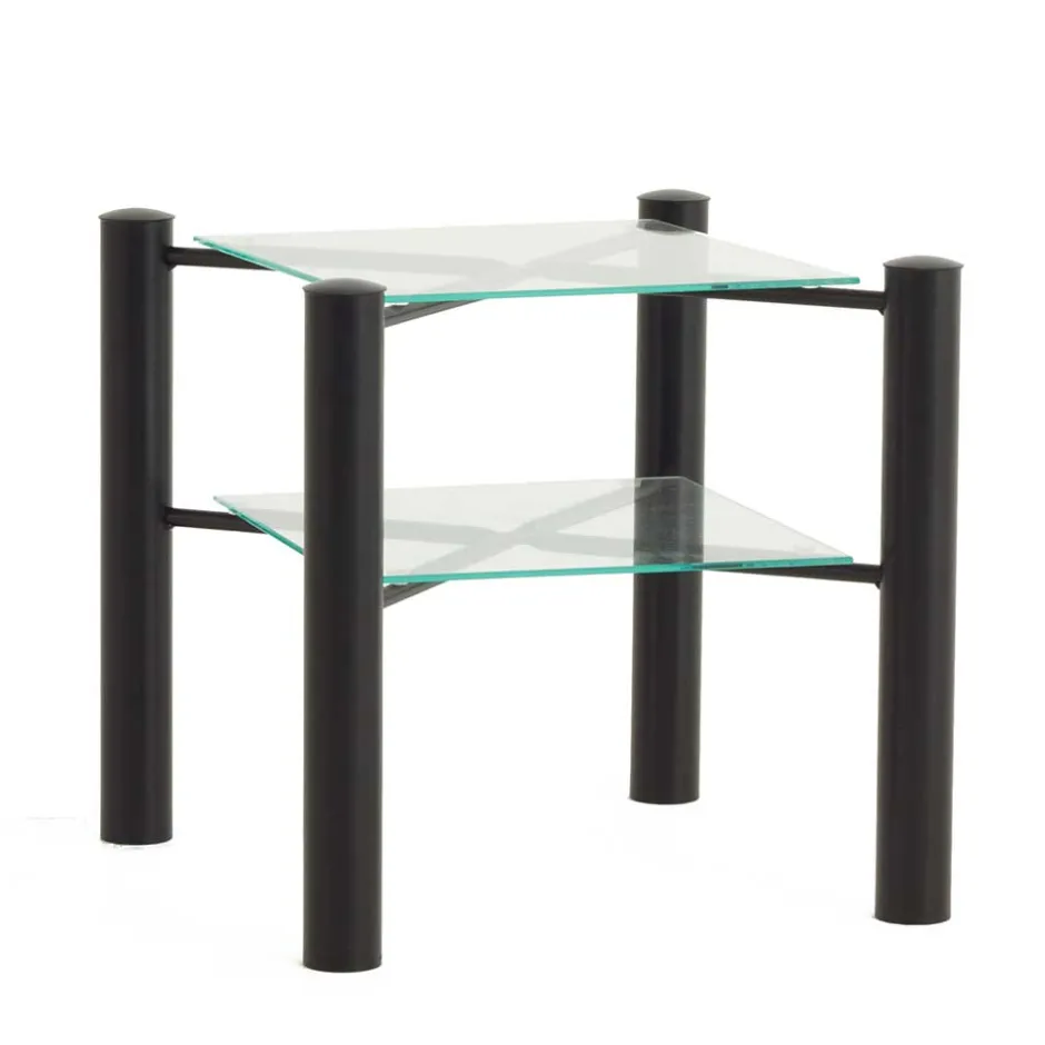 - Tischplatte und zusätzliche Ablagefläche aus Glas