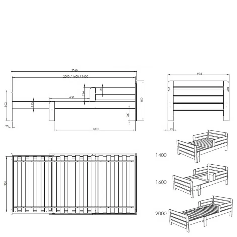 - Die Betten können jeweils bis auf eine Länge von 200 cm ausgezogen werden, wachsen also mit