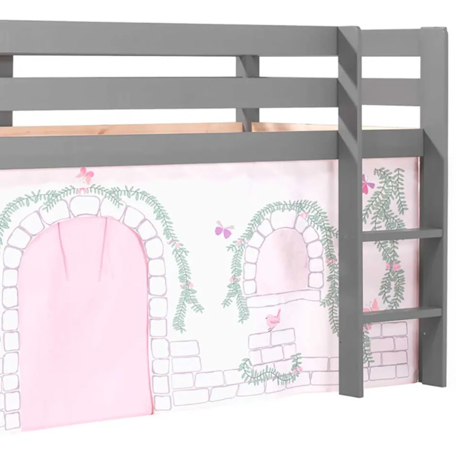 - Verspieltes Halbhochbett in Grau und Rosa