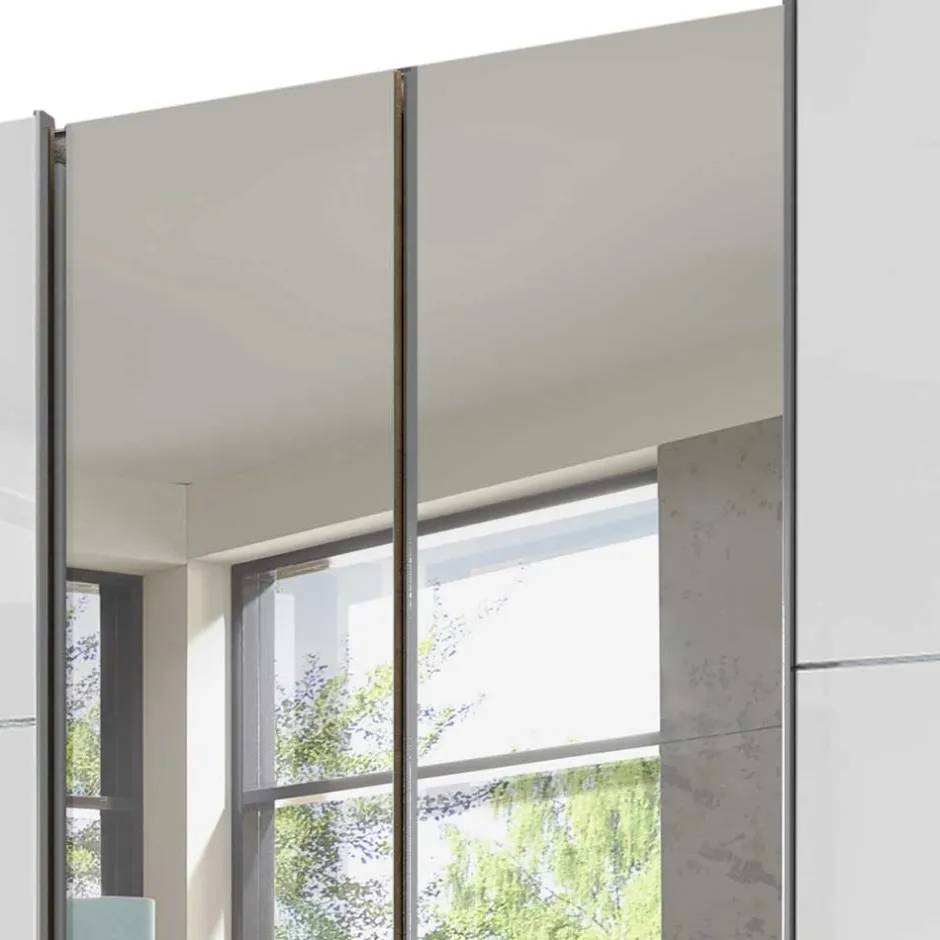 - Drei Facheinheiten innen, links und rechts jeweils eine Kleiderstange und zwei Einlegeböden, mittig drei Einlegeböden