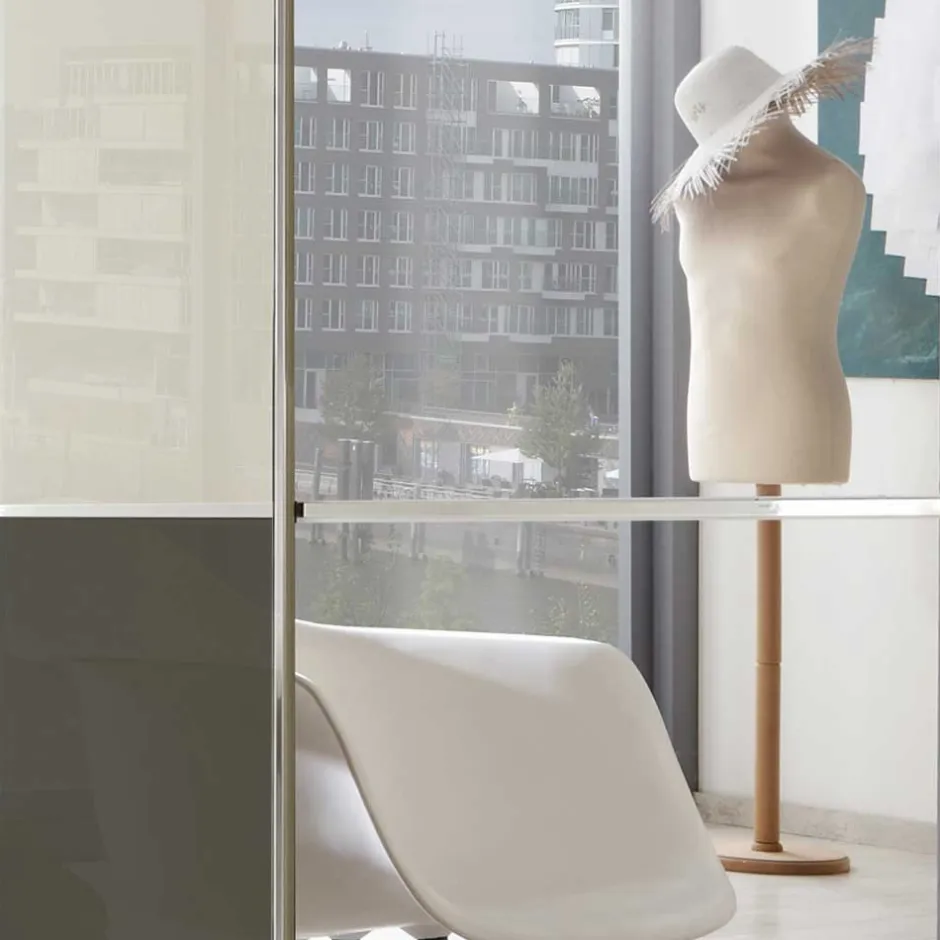 - Drei platzsparende Schwebetüren, innen drei Facheinheiten (80,1/80,1/80,1 cm)