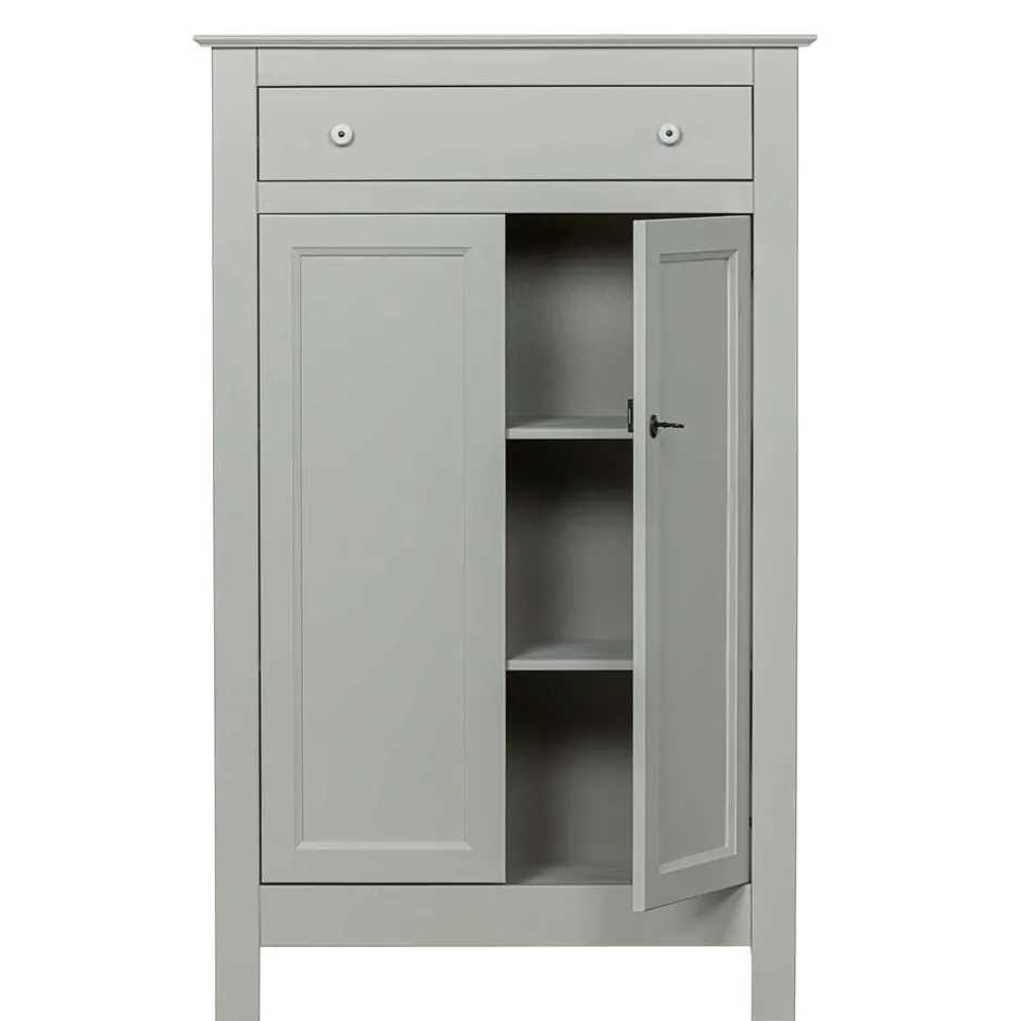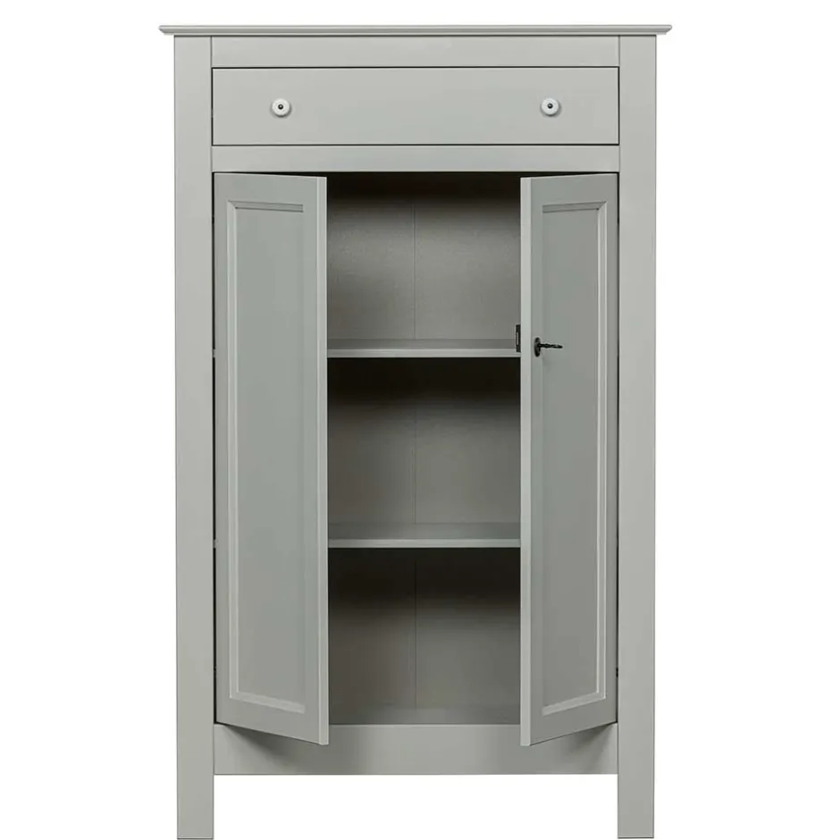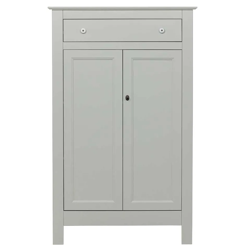 - Aus Kiefer Massivholz (Korpus und Front), MDF (Rückwand) und Spanplatte (Böden) gefertigt
