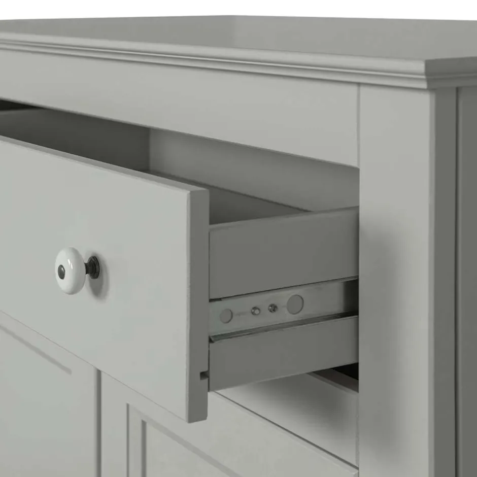 - Liebevolle Details wie Kassettenoptik oder gefräste Kranzleiste unterstreichen den wohnlichen Look