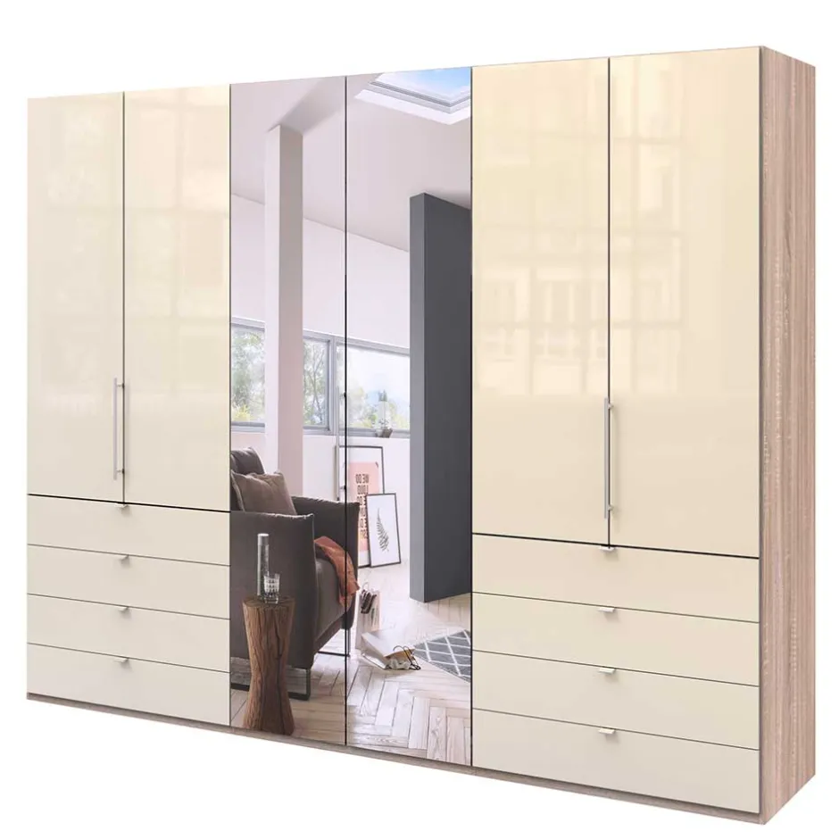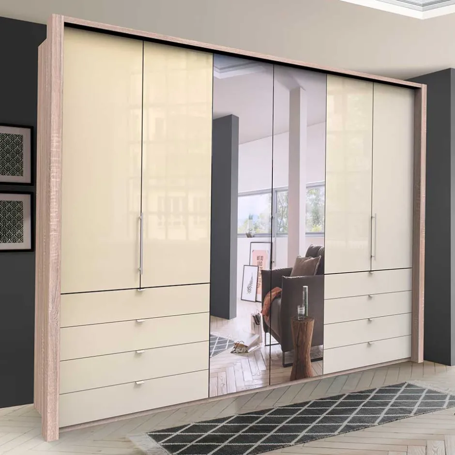 - Effektvoller Kleiderschrank in Cremefarben und Eiche Sägerau