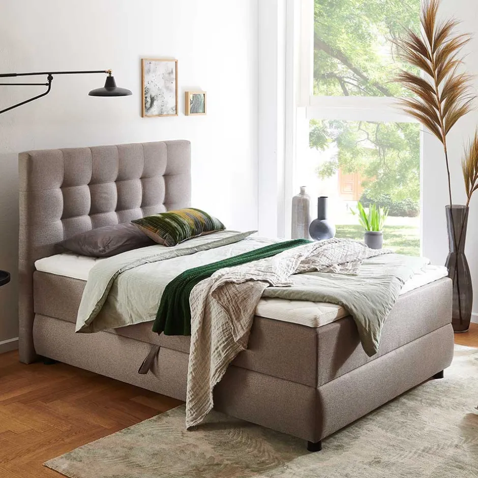 - Hochwertiges Box-Stauraumbett in Hellbraun