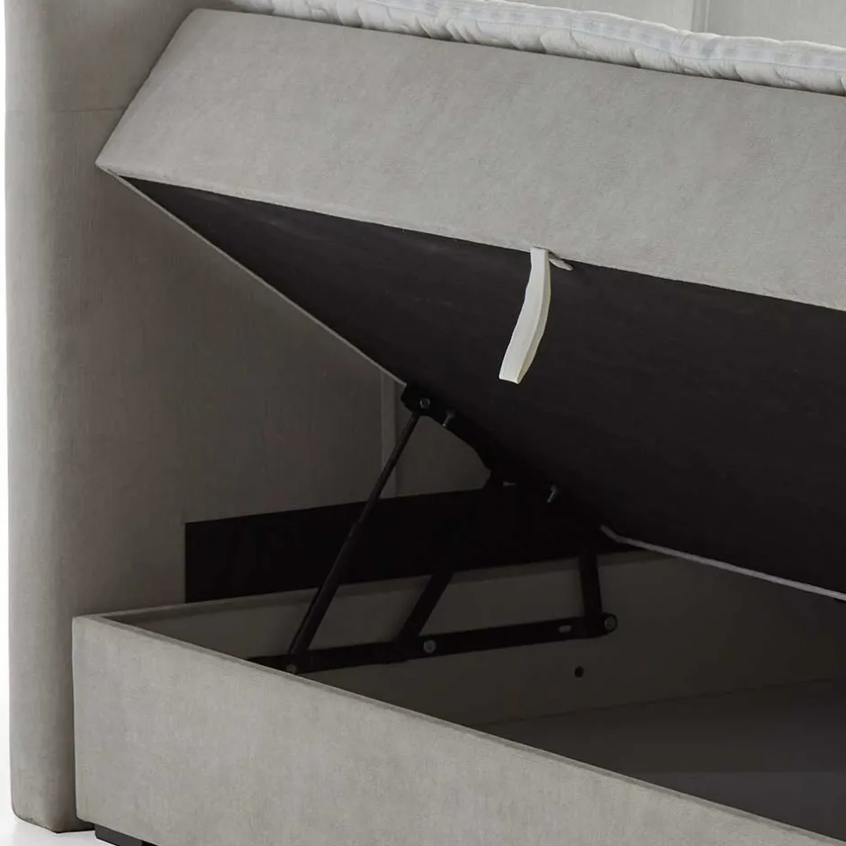 - Repräsentatives Boxbett in Hellgrau