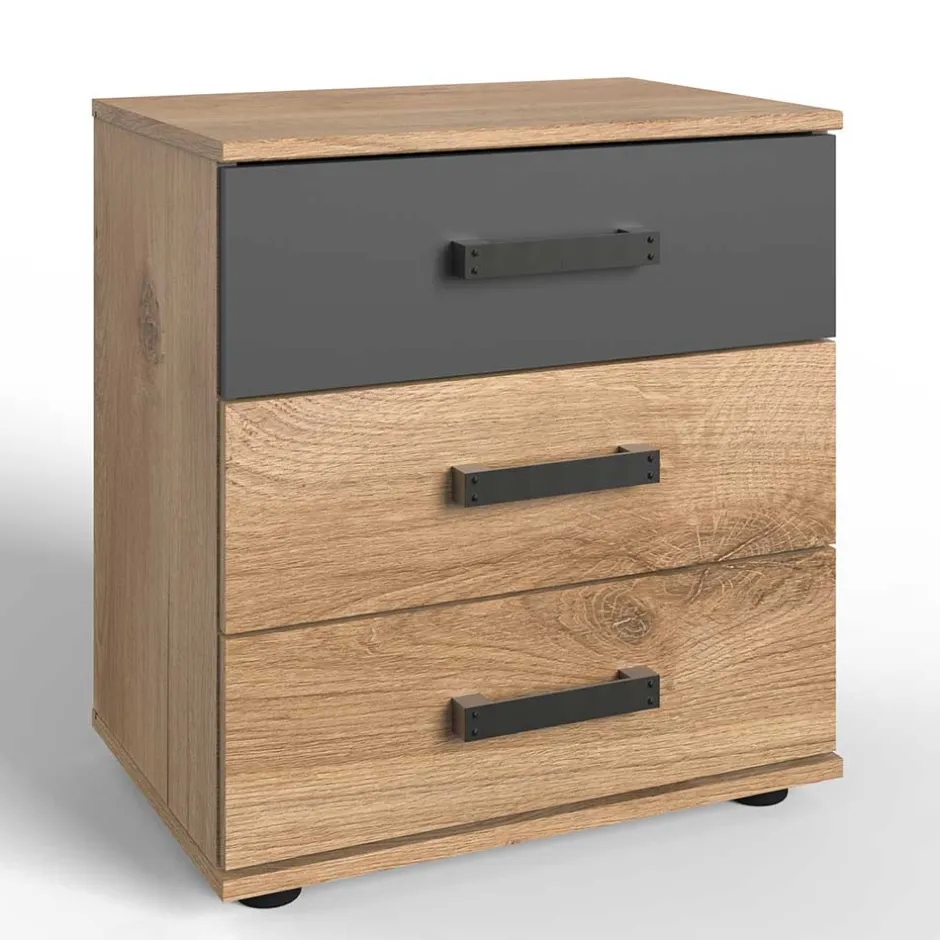 - Stauraum Doppelbett in Plankeneiche Holzoptik und Dunkelgrau