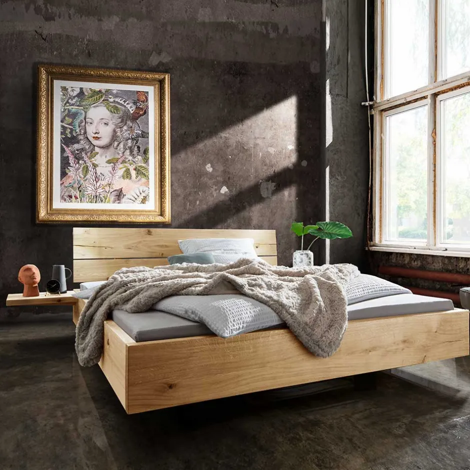 - Kantiges Bett in Wildeichefarben und Schwarz
