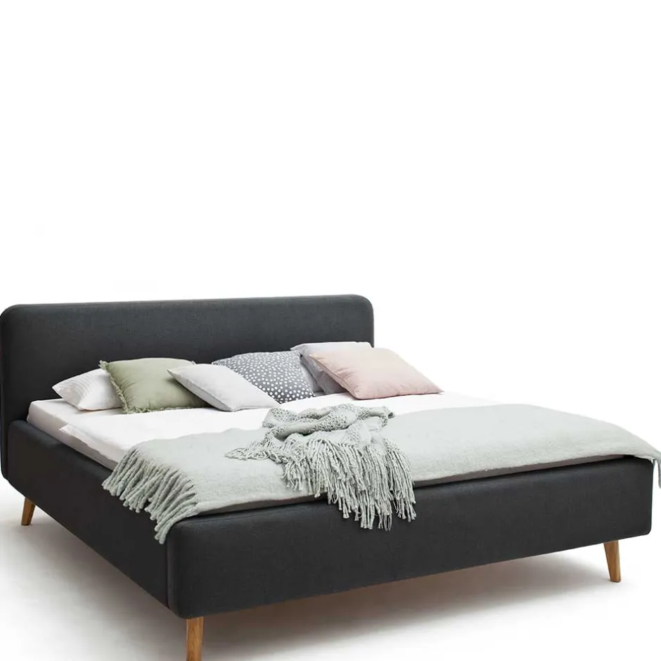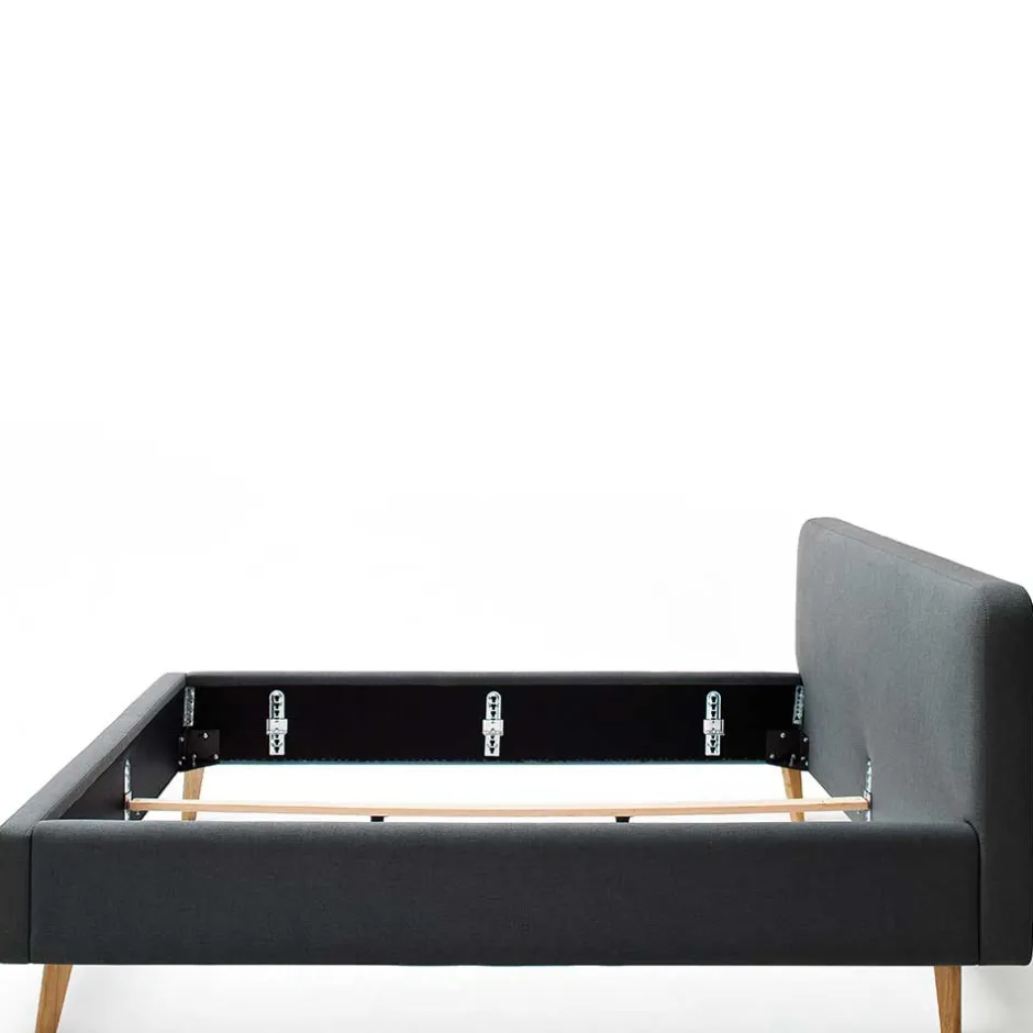 - Trendiges Polsterbett in Anthrazit und Eichefarben