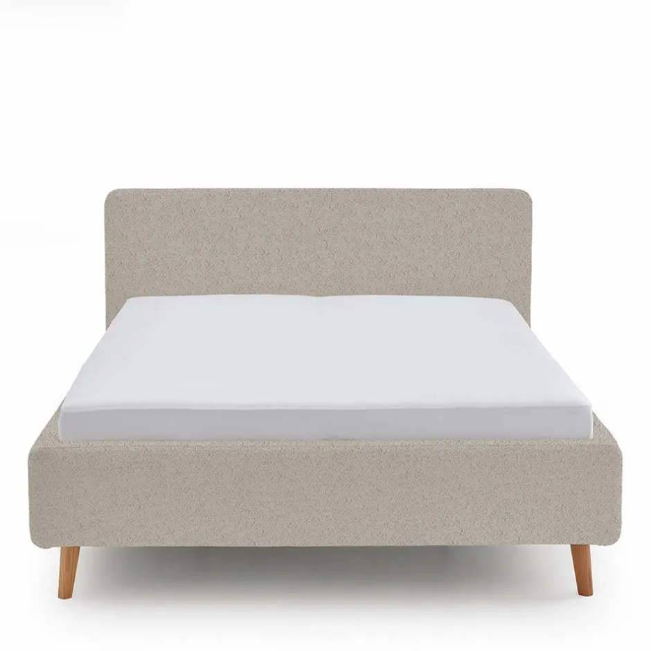 - Dezentes Polsterbett in Beige und Eichefarben