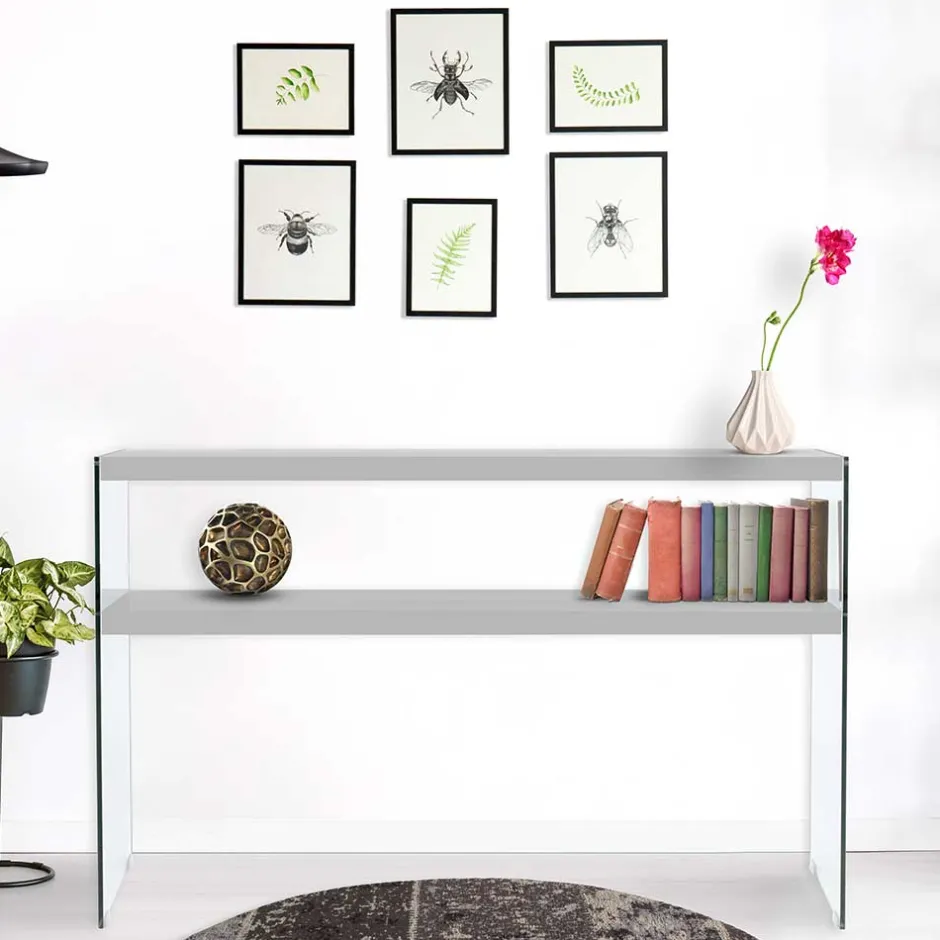 - Moderner Konsoltisch in Silberfarben und Transparent