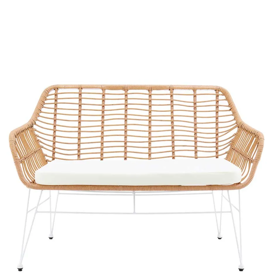 - Attraktive In- und Outdoorbank in Beige und Weiß