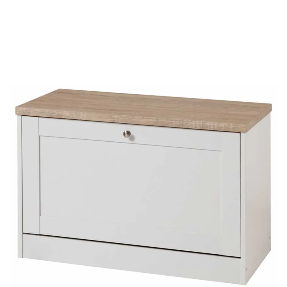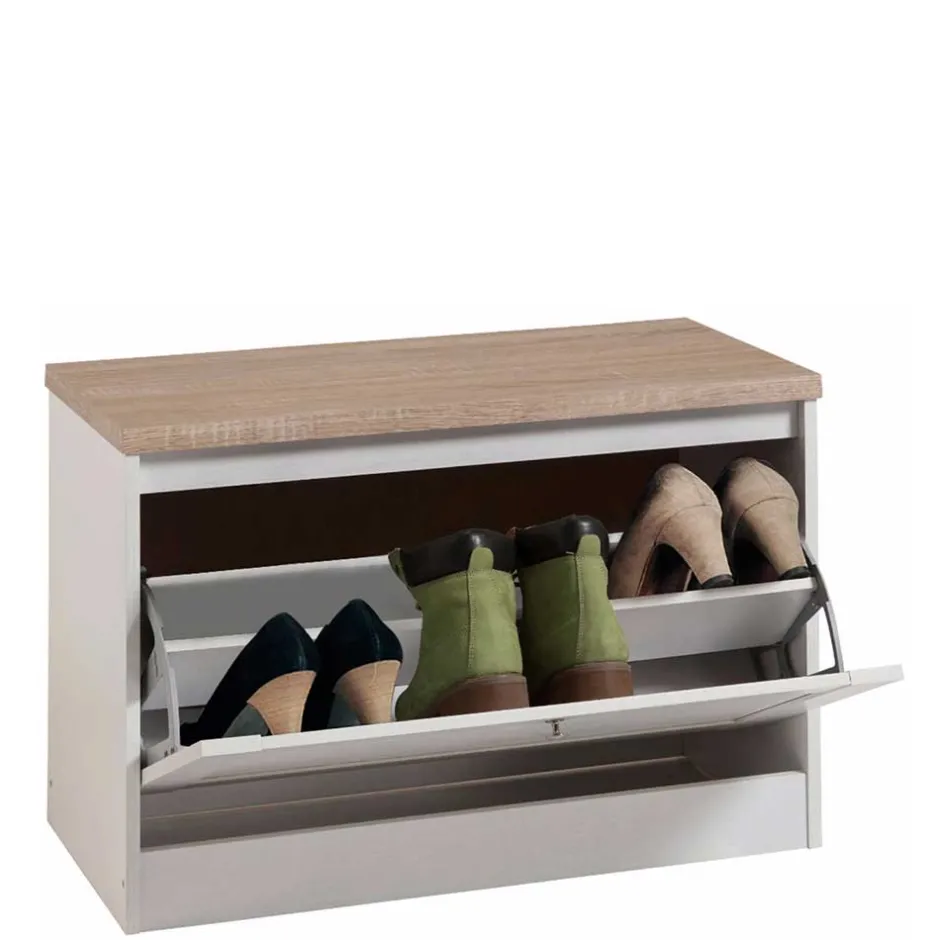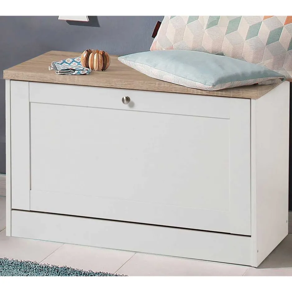 - Moderne Garderobenbank in Weiß und Eiche Sonoma