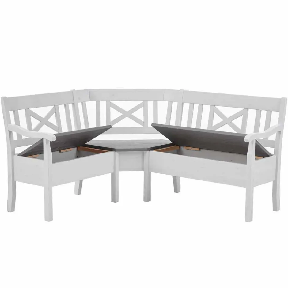 - Mit praktischen Truhen unterhalb der Sitzflächen